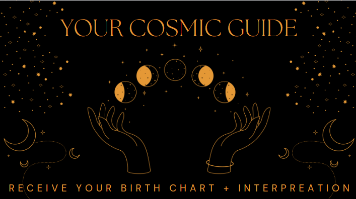 12 pages of cosmic insight to your personal astrology and 30-minute video / phone call follow up upon completion. You will learn the light and shadow of your birth chart, and how to dance with your divine. In our follow up session, feel free to ask specific questions for additional insight and tools provided.